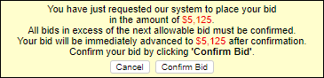 Note: Placing a bid higher than the next allowable bid will require your confirmation before your bid is executed. You will see this prompt: