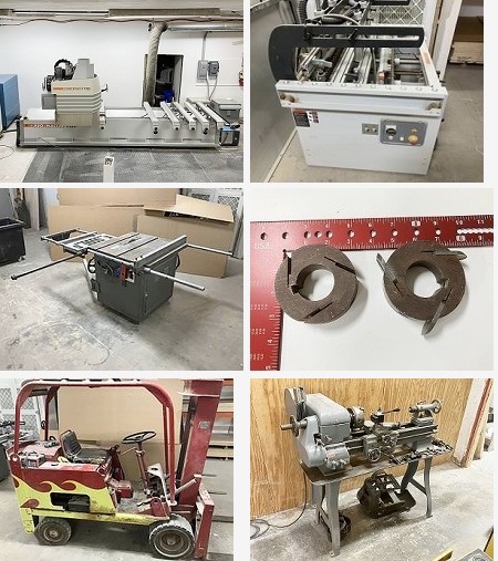 Auction includes: Forklifts - Bandsaws - Tooling - Resaws - Shapers - Straight Line Rip Saws - Planers - Wide Belt Sanders - Dust Collection - Pallet Jacks - Sliding Table Saws - Generators - Borers - Edge Sanders - Edgebanders - Miscellaneous - Veneer - Door Clamps - Clamp Racks - Air Compressors & Dryers - Moulders - Scissor Lifts - Misc. Maintenance Equip. & Supplies - Metal Working - Portable Tools - Table Saws - Measuring Systems - Conveyors - Profile Sanders - Hardware - Grinders - Heaters - Wrapping & Packaging Equipment - Radial Arm Saws - Drill Presses - Portable & Hand Tools - Routers - Feeders - Material Handling - Jointers - Finishing Equipment - Clamps - Edgebanding - Spindle Sanders - IT Equipment - Pinch Rollers - Picture Frame Machinery - Countertop Saws - Engravers - Racking - Fans - Milling Machines - Dovetail Jigs - Laminate Slitters - Scroll Saws - Sharpeners - Vices - Factory Carts - Welding Equipment - Cut Off Saws - Wooden Components/Pcs - Lighting - Buffers - Router/Shapers