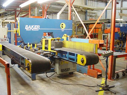 Lot #13 - Baker BBR-0 Horizontal Feed Thru Bandsaw W/Return Conveyor