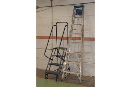 Lot #196 - Louisville and Berg Rolling Safety Step Ladders (Qty 2)