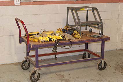 Lot #186 - EGA Step Ladder, Work Lights, Air Hose And Work Cart