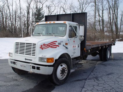 Lot #106 - International 4700 Diesel Tilt/Dump Bed with Stationary Headboard (1997)