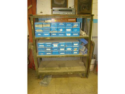 Lot #327 - Metal Shelf w/ (36) Storage Drawers & Contents