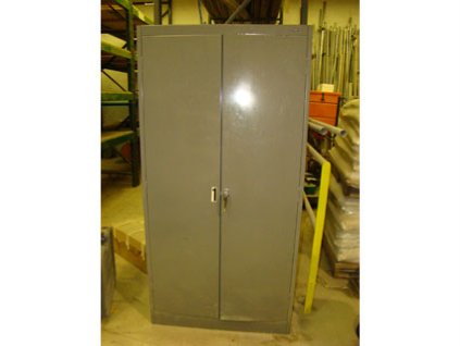Lot #359 - Metal Shelf Unit with Doors and Contents