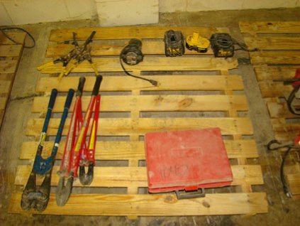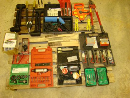 Lot #390 - Miscellaneous Items on Pallet - Kwickset Installation Kit, Bolt Cutters, Crimper, Tin Snips, Etc