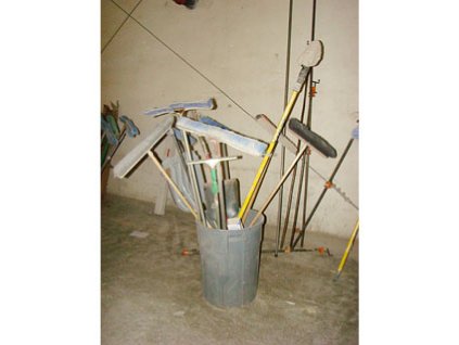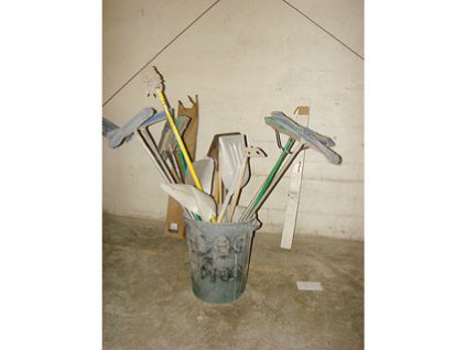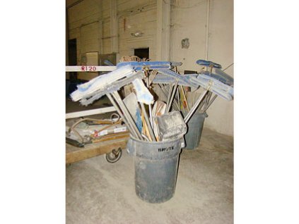 Lot #861 - Brooms & Scoops in Trash Container