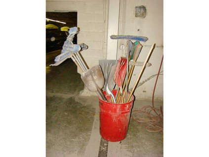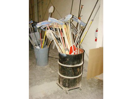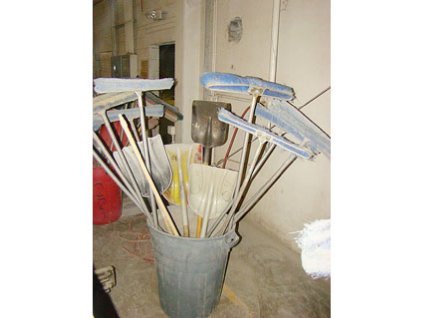 Lot #865 - Brooms & Scoops in Trash Container