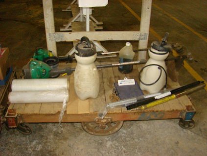 Lot #2212 - Factory Trucks (Qty 3) w/ Weed Eaters, Hand Sprayers, Shrink Wrap, Nails, Etc