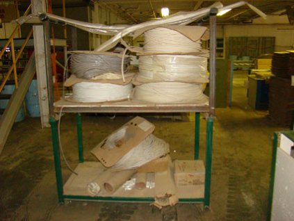 Lot #2227 - Metal Stacking Racks (Qty 2) w/Rolls of Weather Stripping (Qty 6)