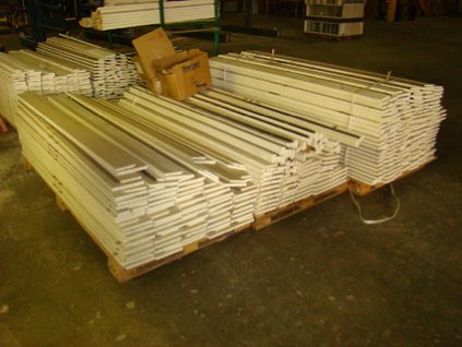 Lot #2230 - Pallets of Door Jambs - 82 ½" x 6 ½" (Qty 4) and Metal Stacking Racks with Door Parts (Qty 2)
