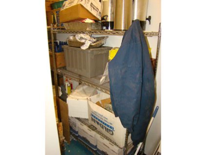 Lot #2239 - Contents of Break Room - Totes, Buckets, Refrigerator, Etc
