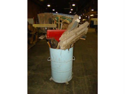 Lot #2250 - Barrel of Brooms and Scoops