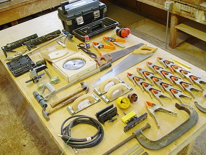 Lot #186 - Stanley Tool Box, Tools, Clamps, Misc. Items