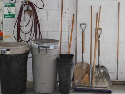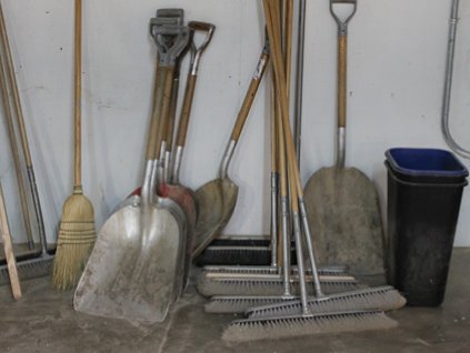 Lot #412 - Brooms, Shovels and Trash Cans