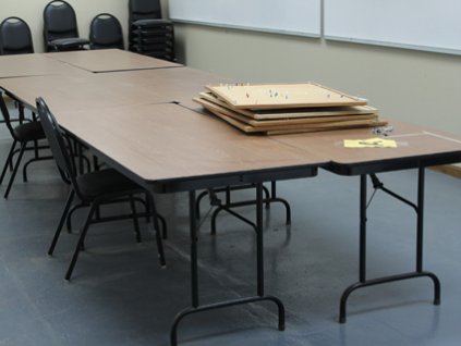Lot #415 - Lunch Room Table, Chairs, Refrigerator, White Board and VCR/DVD Player