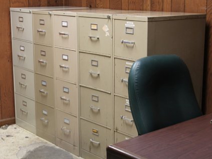 Lot #452 - Office Desk, Chair and File Cabinet