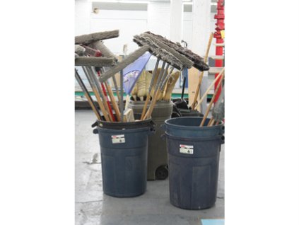 Lot #494 - Trash Cans, Brooms, Shovels and Mops