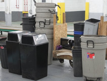Lot #495 - Trash Cans and Factory Truck