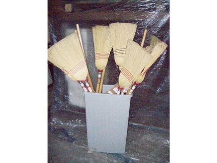 Lot #201 - Trash Can with (12) Brooms