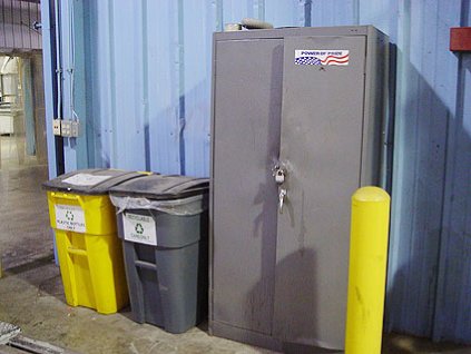 Lot #330 - Metal Cabinet & (2) Roller Wheel Containers