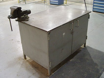 Lot #373 - Steel Top Table and Cabinet Base w/ Vise