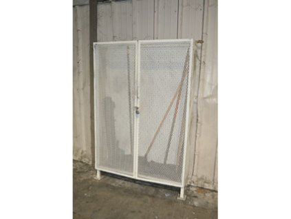 Lot #2312 - Steel Security Cage and Brooms