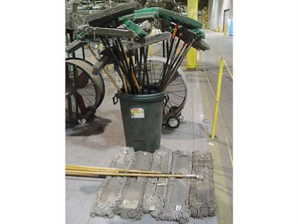 Lot #8192 - Brooms, Mops & Containers