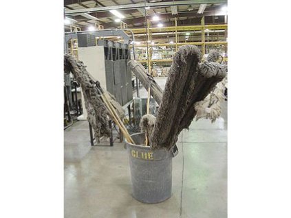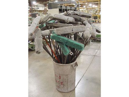 Lot #6295 - Push Brooms and Container