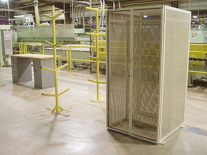 Lot #6308 - Wire Security Cabinet, Edge Banding Racks and Desk