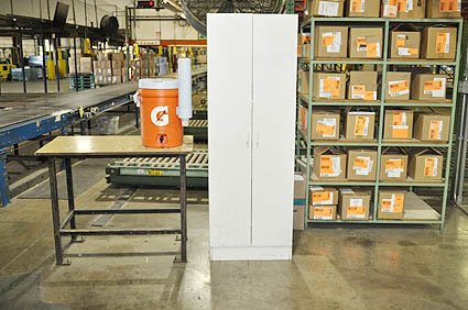 Lot #6751 - Steel Frame Table, Rack and Storage Cabinet