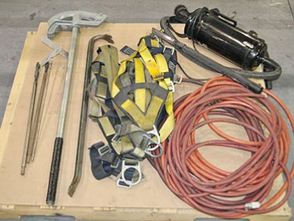Lot #10091 - Vacuum, Safety Harnesses, Crow Bar, Conduit Bender and Misc Items on Pallet