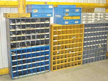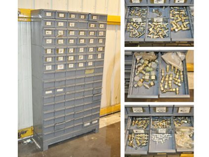 Lot #10098 - Hardware Racks, Drawers and Parts Inventory