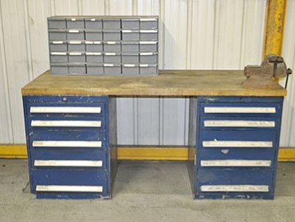 Lot #10099 - Bott/Kennedy Tool Cabinet. Work Tables, Vise and Storage Drawers