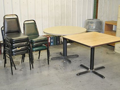 Lot #10100 - Lunchroom Tables, Chairs, Coffee Stand and File Cabinet