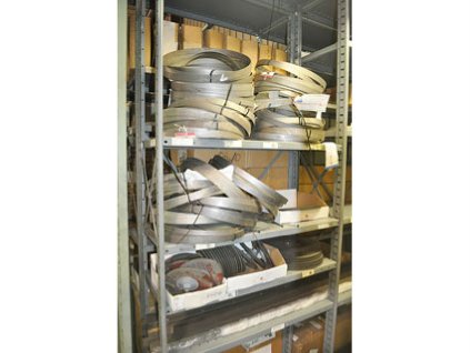 Lot #20618 - Steel Storage Rack, Rubber Belting, Bearings, Pneumatic Cylinders And Misc. Contents