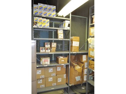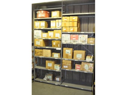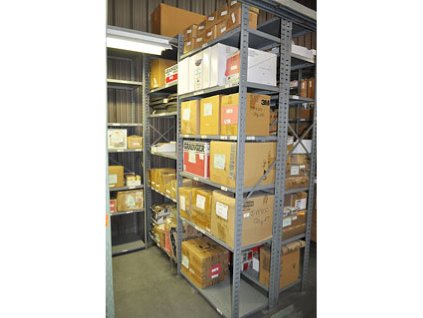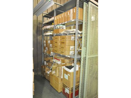 Lot #20624 - Steel Storage Rack And Plastic And Steel Inventory