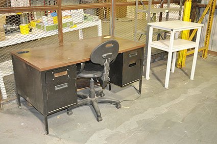Lot #20637 - Office Desk, Chair, and Rack