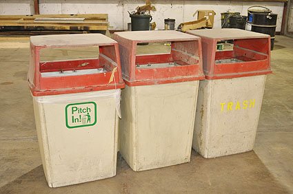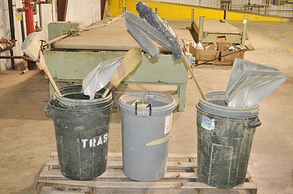 Lot #20827 - Rubbermaid Trash Cans, Brooms and Shovels