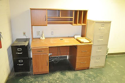 Lot #20828 - Office Desk, Table, File Cabinet and Chairs
