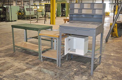 Lot #21386 - Steel Frame Tables & Shop Desk (Qty 5)
