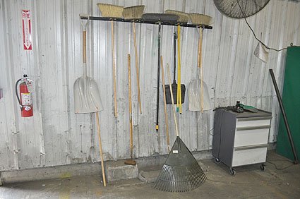 Lot #21816 - Brooms, Shovels & Storage Cabinet