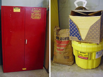 Lot #124 - Justrite 60 Gallon Fammable Liquid Storage Cabinet and Safety Items
