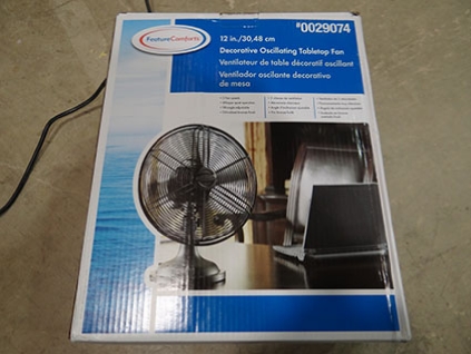 Lot #310 - Assorted Oscillating and Regular Style Table Top Fans (qty 10) with Wooden Bin