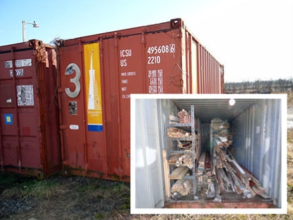 Lot #573 - Shipping Container & Contents - Moulding, Edgebanding, Etc