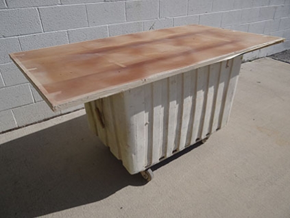 Lot #585 - Table Mounted on a Rolling Plastic Bin