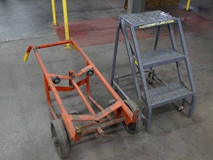Lot #656 - Steel Frame Drum Hand Truck And Step Ladder