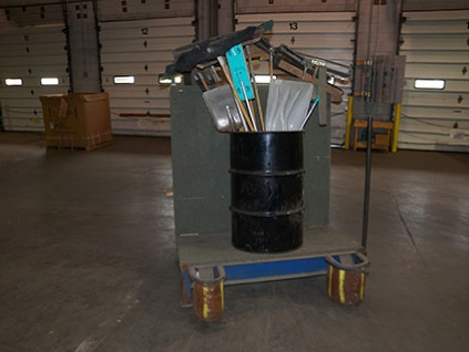 Lot #666 - Steel Frame Work Cart With Brooms and Shovels