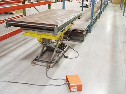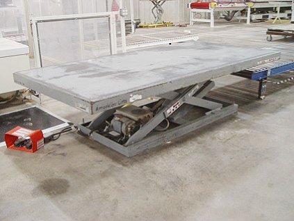 Lot #75 - American 2,000 Lb. Capacity Hydraulic Scissor Lift Table & Conveyor Line