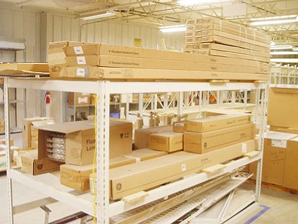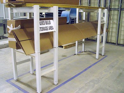 Lot #371 - Steel Frame Storage Rack with Light Fixtures and Bulb Inventory