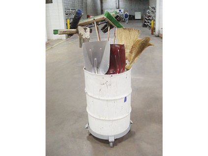 Lot #3373 - Steel Waste Can, Brooms and Shovels